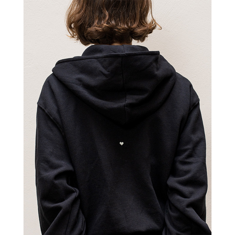 Felpa bomber ricamata a mano nella factory melidé con zip, cappuccio e tasche laterali.