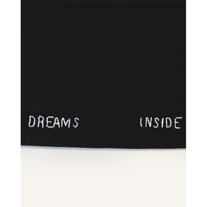 Scritta “DREAMS INSIDE” ricamata a mano sul retro.