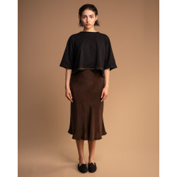 Chiusura con zip invisibile laterale. Colore marrone.