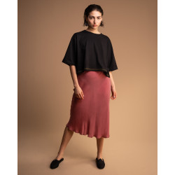 Lava questa gonna preferibilmente a mano, se in lavatrice solo a bassa temperatura con ciclo e detersivo super delicato. Lasciala asciugare all'aria, stendila a rovescio lontano da apparecchi di riscaldamento e dalla luce solare diretta. Stirala al contrario impostando la temperatura al di sotto della media. Ricorda che deve essere asciutta prima della stiratura.
