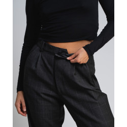 Sono ispirati a pantaloni vintage maschili di alta sartoria e puoi indossarli lunghi lunghi e appoggiati sulle scarpe, precisi all'altezza del tacco o leggermente cropped scoprendo la caviglia. Li riceverai senza orlo così potrai decidere la lunghezza più adatta a te, in base alla tua altezza e corporatura e in base alla scarpe con cui desideri indossarli. Portali da una sarta di fiducia e scegli se fare un orlo semplice, invisibile o un orlo arrotolato.
