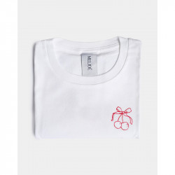 Il ricamo è realizzato a mano nella factory Melidé, da una delle nostre ricamatrici: ogni t-shirt è accompagnata da un cartellino firmato da chi l’ha ricamata.