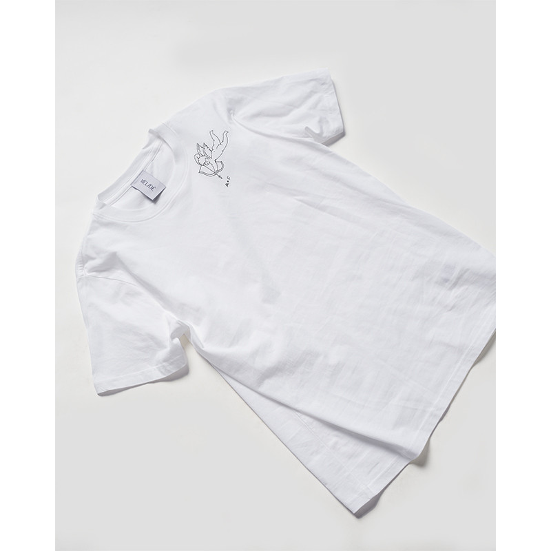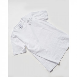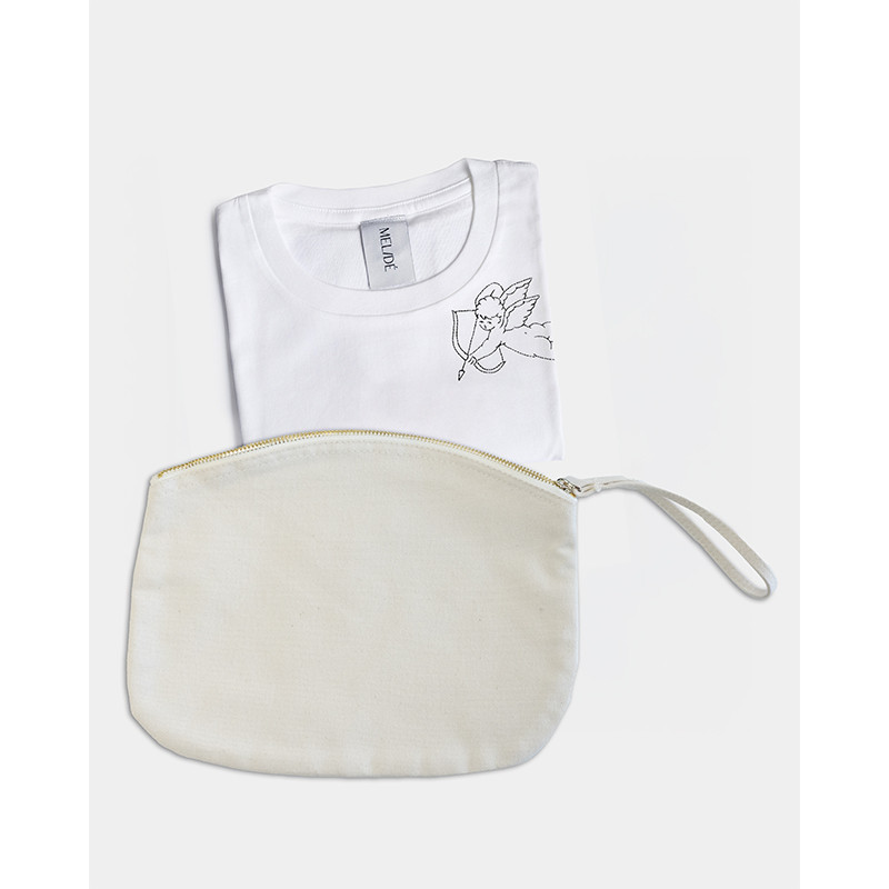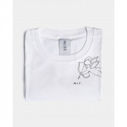 Il ricamo è realizzato a mano nella factory Melidé, da una delle nostre ricamatrici: ogni t-shirt è accompagnata da un cartellino firmato da chi l’ha ricamata.