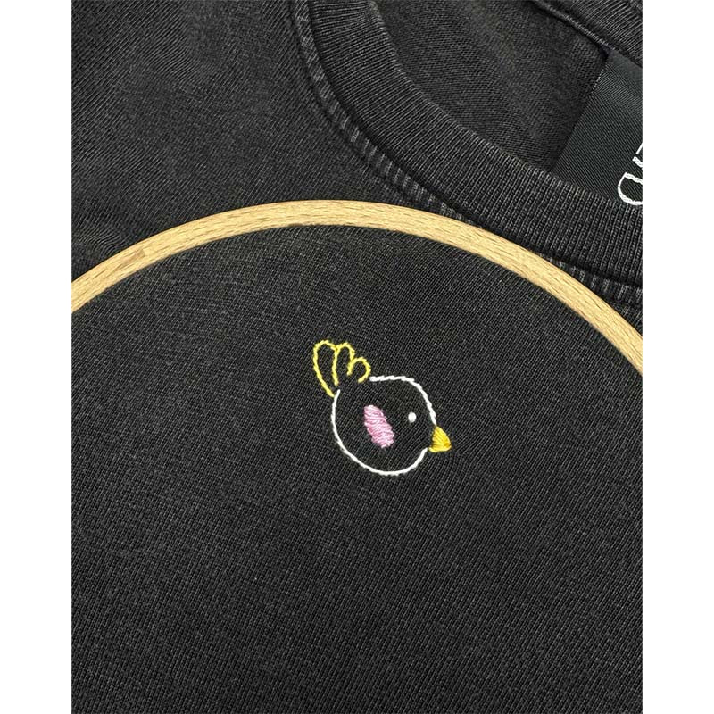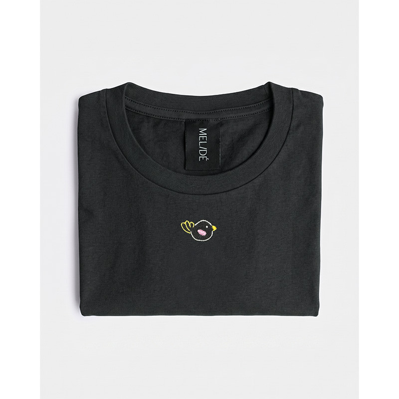 Il ricamo è realizzato a mano nella factory Melidé, da una delle nostre ricamatrici: ogni t-shirt è accompagnata da un cartellino firmato da chi l’ha ricamata.