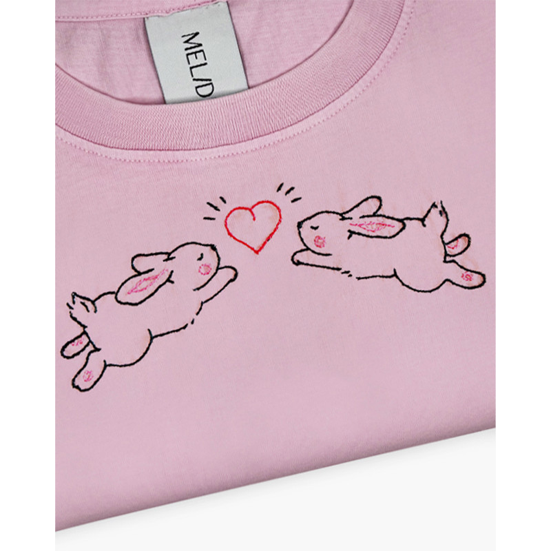 Il ricamo è realizzato a mano nella factory Melidé, da una delle nostre ricamatrici: ogni t-shirt è accompagnata da un cartellino firmato da chi l’ha ricamata.