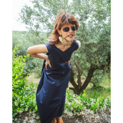 Vestito ampio e lungo con scollo a V in poliestere deadstock.