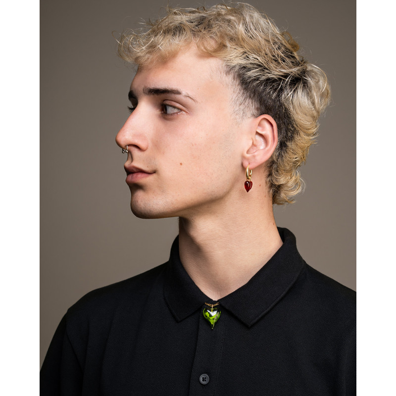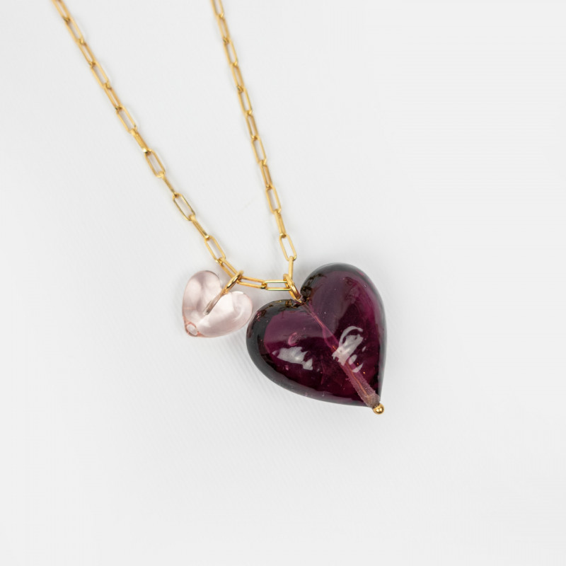 Cuore in vetro di Murano realizzato a mano. Gancetto in argento semplice o placcato in oro.