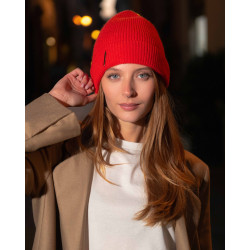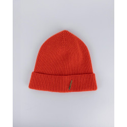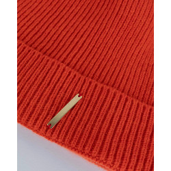 Berretto realizzato in lana, viscosa, poliammide e cachemire deadstock con finitura a coste, decorato con una barretta di metallo ispirata al logo MELIDÉ con bordo risvoltato.