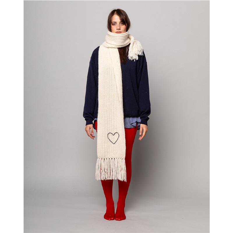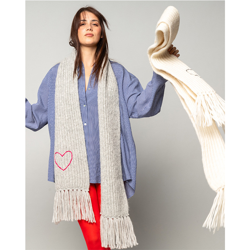 Questa sciarpa lunga e avvolgente con frange è confezionata in un morbido blend di lana e alpaca deadstock, completata da un'etichetta con logo ricamato.