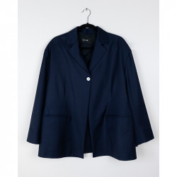 Giacca dal taglio squadrato e dritto, con chiusura a bottone singolo alto, maniche ampie con spacchetti, spacco centrale sul retro e fodera parziale in cupro.