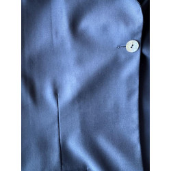 La chiusura è affidata a un solo bottone posizionato in alto, invece che all’altezza del petto come nelle giacche classiche. Una scelta minimale che modifica l’equilibrio del capo e lascia la giacca più aperta sul corpo, come appoggiata sulle spalle. Il bottone è in madreperla naturale, diametro 2 cm.