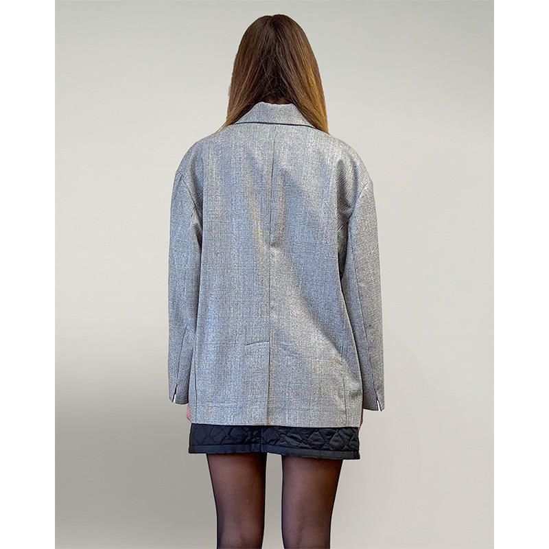 Giacca taglia unica oversize, dal disegno squadrato e dritto, essenziale e senza tempo. La costruzione è pensata per essere indossata con naturalezza, anche sopra capi voluminosi, mantenendo una linea pulita e mai appesantita.