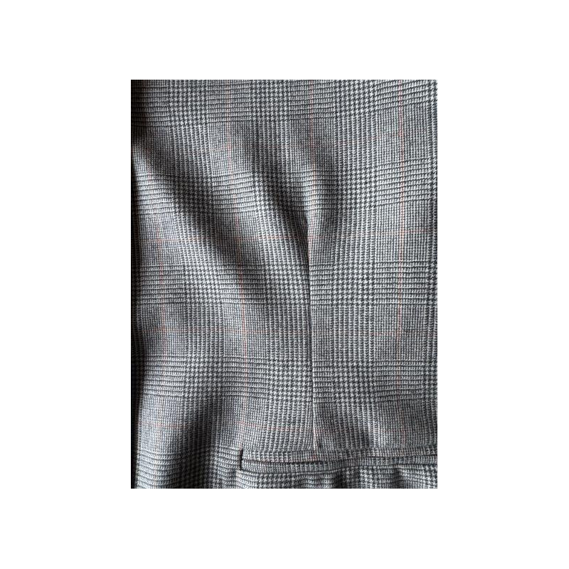 Giacca dal taglio squadrato e dritto, con chiusura a bottone singolo alto, maniche ampie con spacchetti, spacco centrale sul retro e fodera parziale in cupro.
