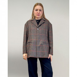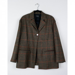 Giacca dal taglio squadrato e dritto, con chiusura a bottone singolo alto, maniche ampie con spacchetti, spacco centrale sul retro e fodera parziale in cupro.