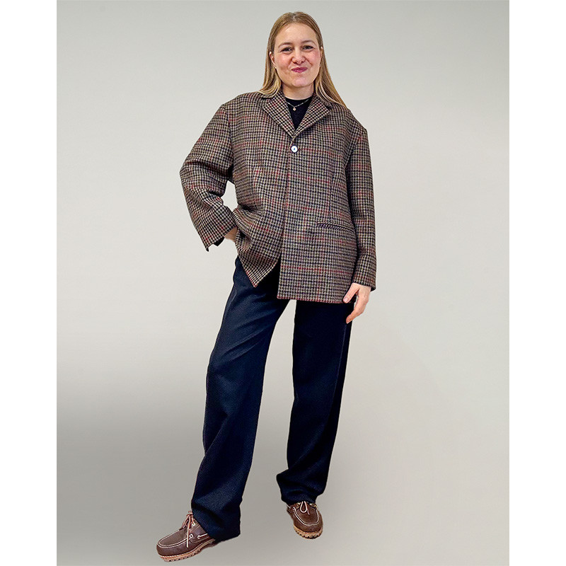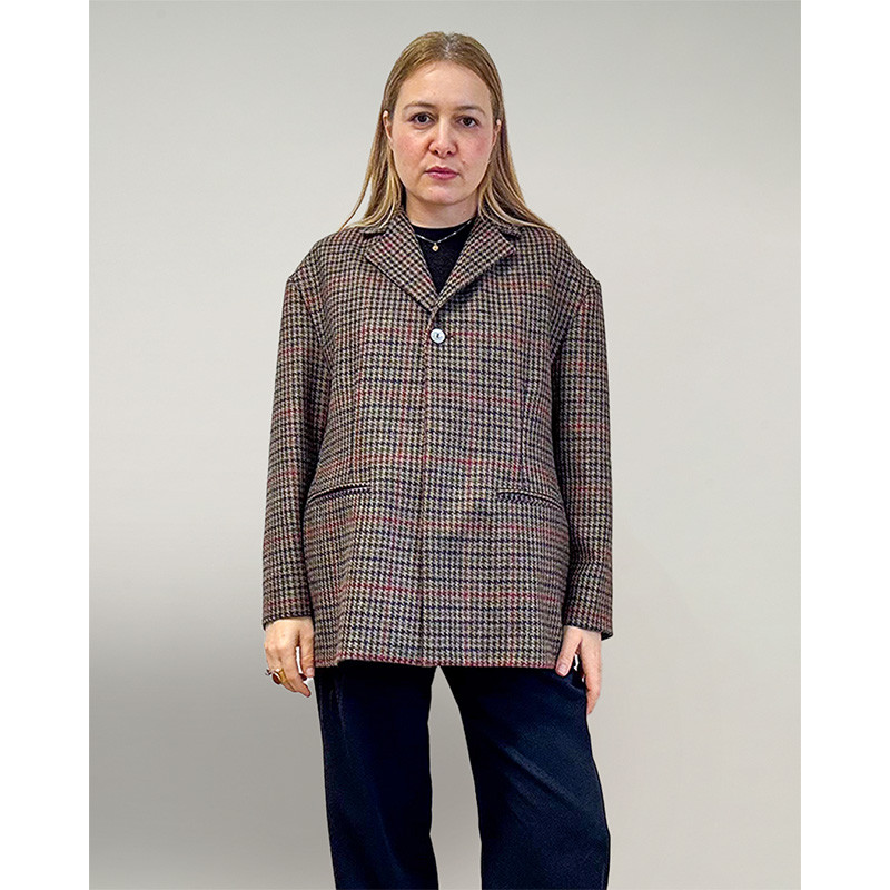 Giacca taglia unica oversize, dal disegno squadrato e dritto, essenziale e senza tempo. La costruzione è pensata per essere indossata con naturalezza, anche sopra capi voluminosi, mantenendo una linea pulita e mai appesantita.