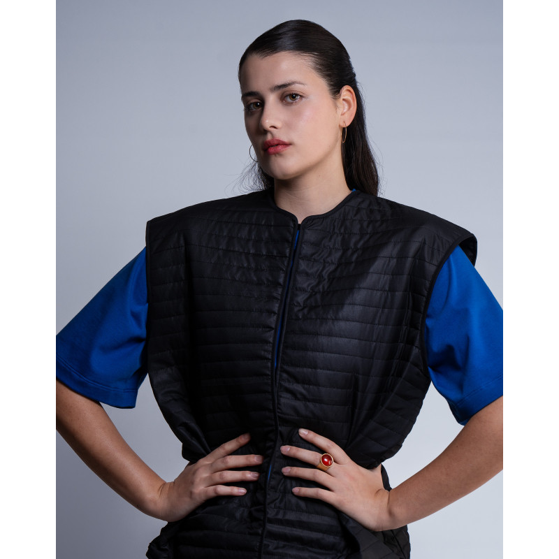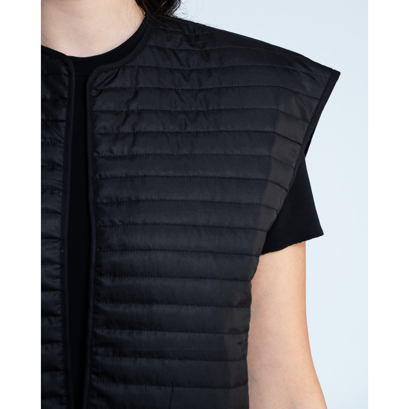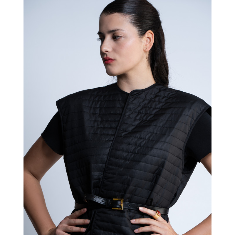 Gilet nero trapuntato, in poliestere imbottito proveniente da economia circolare.