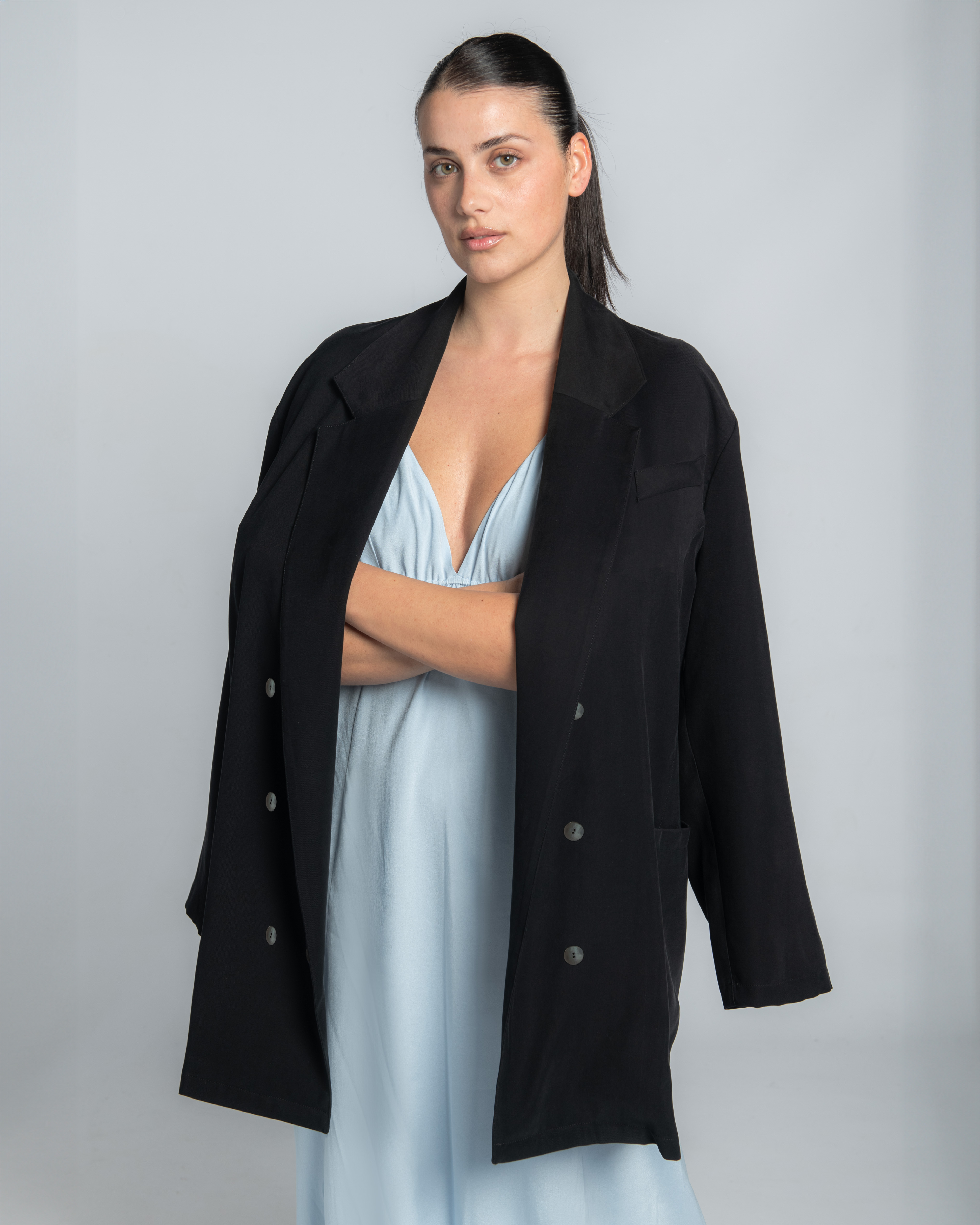 Un blazer, una giacca, uno spolverino, un soprabito, un trench, un vestito: questo capo ha mille personalità e si presta al più classico dei "gira la moda", cambiando identità a seconda del look che vuoi creare. È un blazer perché si inscrive perfettamente in quel concetto di capospalla che a ogni mezza stagione compare in post, stories, riviste cartacee e online. Adorerei scrivere un pezzo sui blazer due volte l'anno per una rivista, come mi piacerebbe fare quei servizi sul caldo con la gente che mette i piedi nelle fontane o le interviste sulla spiaggia. Ma non divaghiamo.
