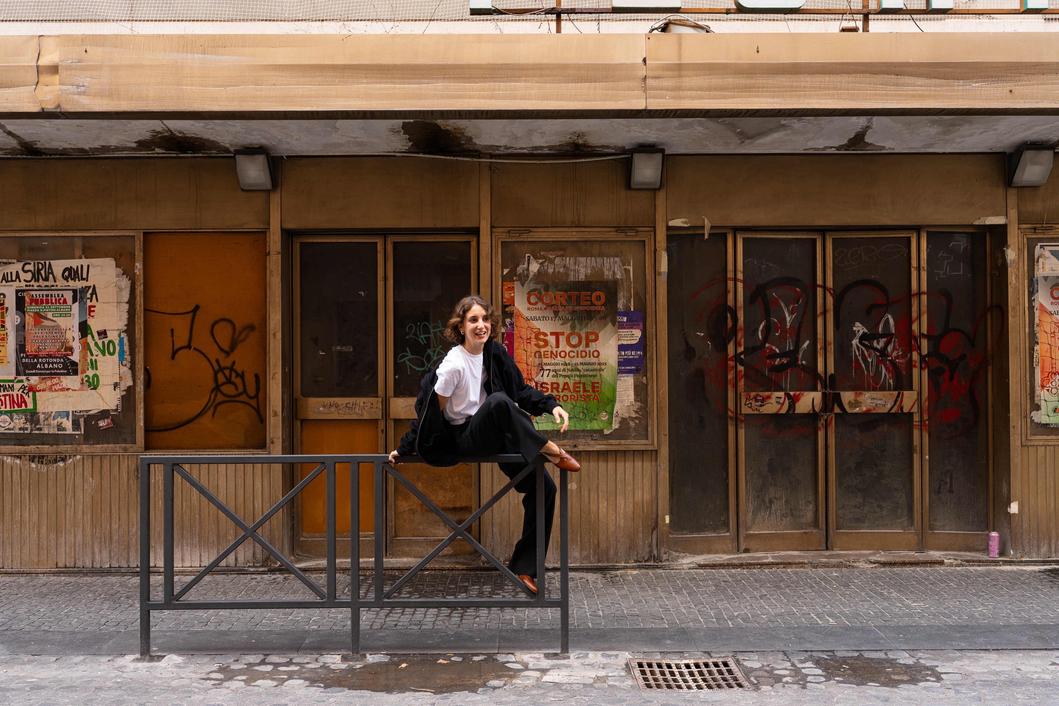 Non ho voluto sconti a questa inquadratura: c’è l’abbandono, la decadenza, c’è sporcizia, ci sono i manifesti contro il genocidio a Gaza, c’è anche il pericolo che cada qualcosa, infatti dico sempre a mio figlio di camminare dall’altra parte della strada. Ho voluto fotografarlo ancora perché è brutto, ma è bello lo stesso.