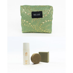Beauty-case sartoriale realizzato in tessuto deadstock.