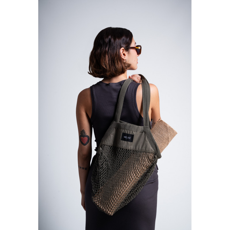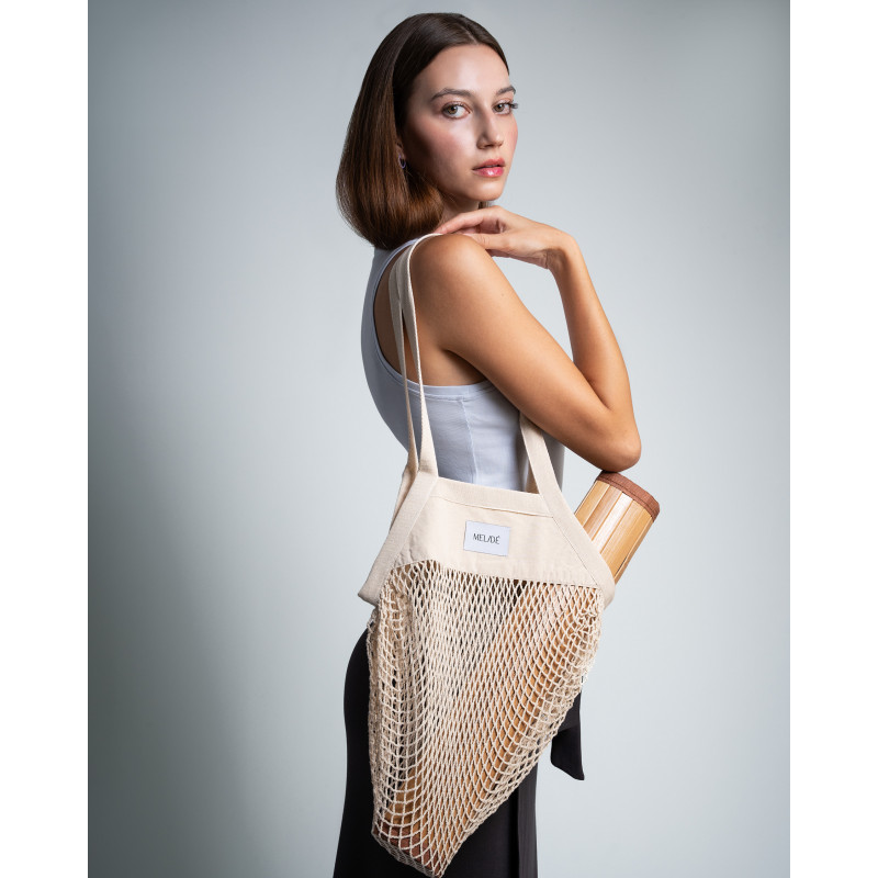 Borsa a rete super capiente in cotone GOTS.