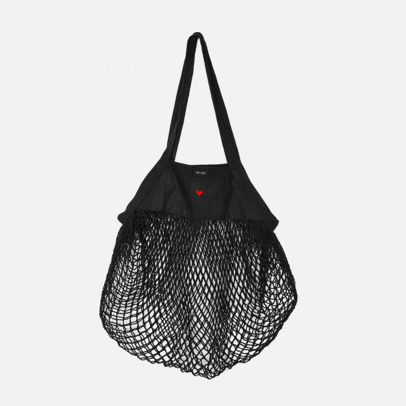 Borsa a rete in tela di cotone GOTS ricamata a mano.