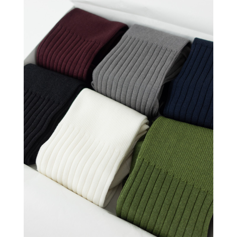 Calze unisex in Filo di Scozia a costine larghe, ispirate alle classiche calze maschili.
