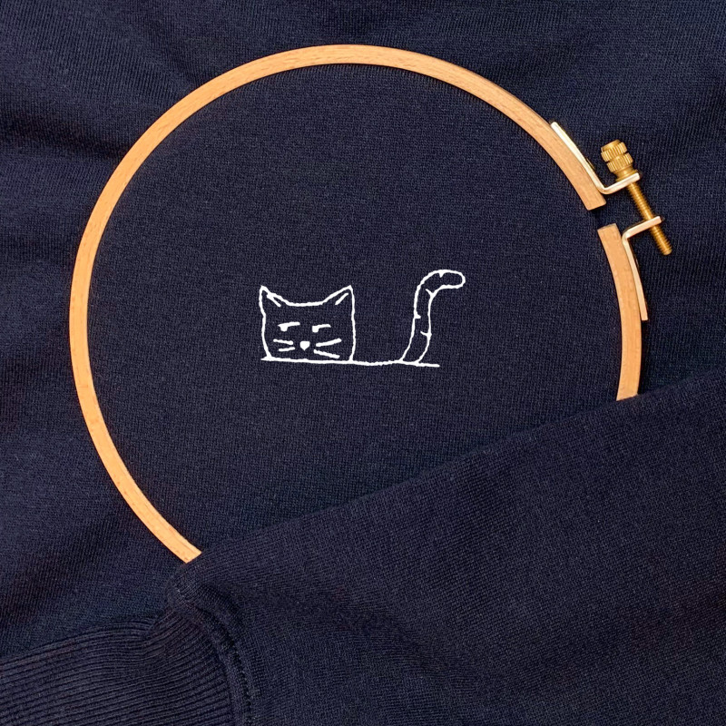 Ricamo a mano su felpa in cotone caldo GOTS, ecosostenibile.