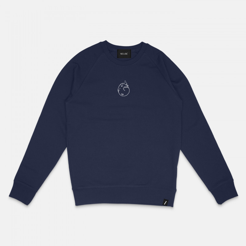Ricamo a mano su felpa in caldo cotone ecosostenibile.