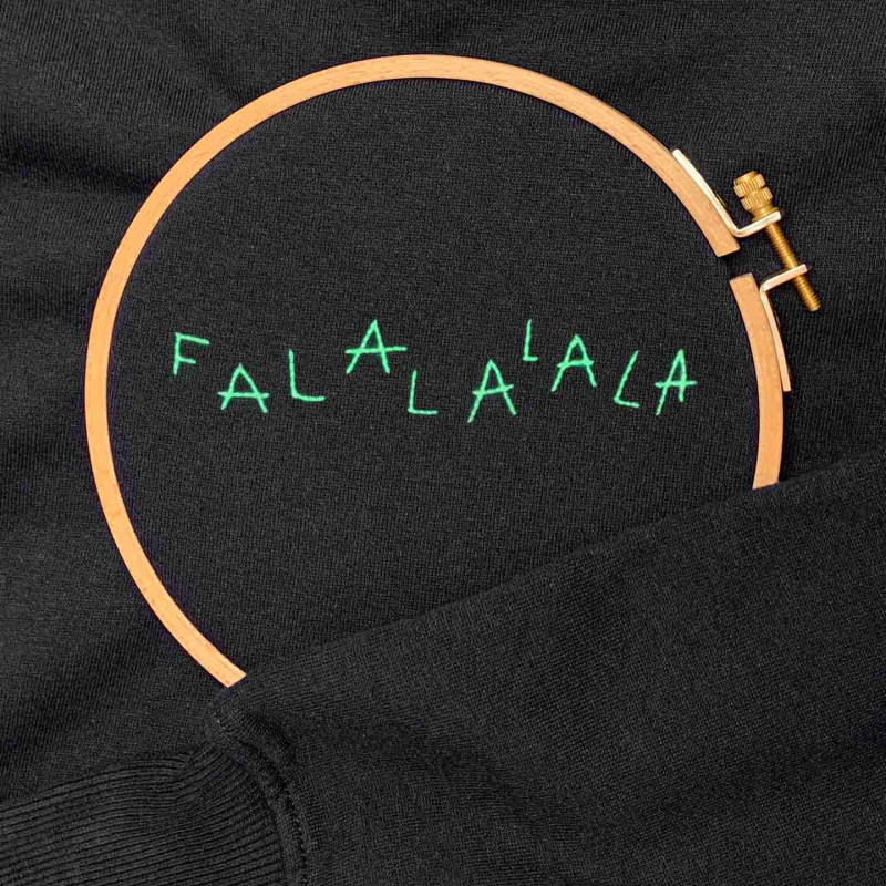 Ricamo realizzato a mano nella nostra factory su felpa in cotone 100% GOTS di alta qualità.