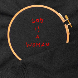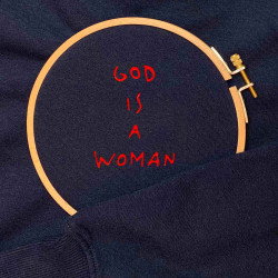 Ricamo God is a Woman. Questa felpa è disponibile in diversi modelli e colori e il ricamo può essere realizzato con filo fucsia o filo rosso.