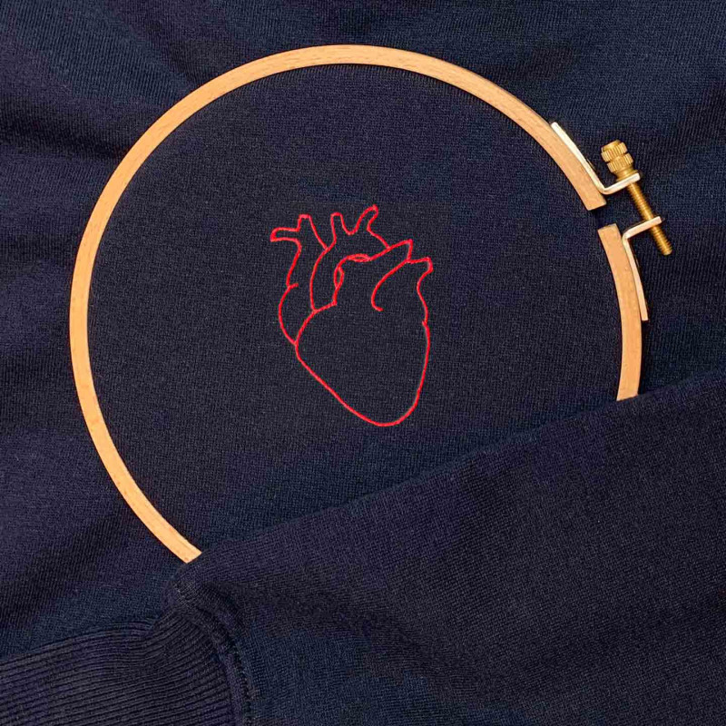 Il ricamo lineheart, o cuore anatomico, fa parte delle storia di melidé. È uno dei nostri ricami iconici e dal 2016 è anche uno dei nostri bestseller. Non ci stancherà mai.