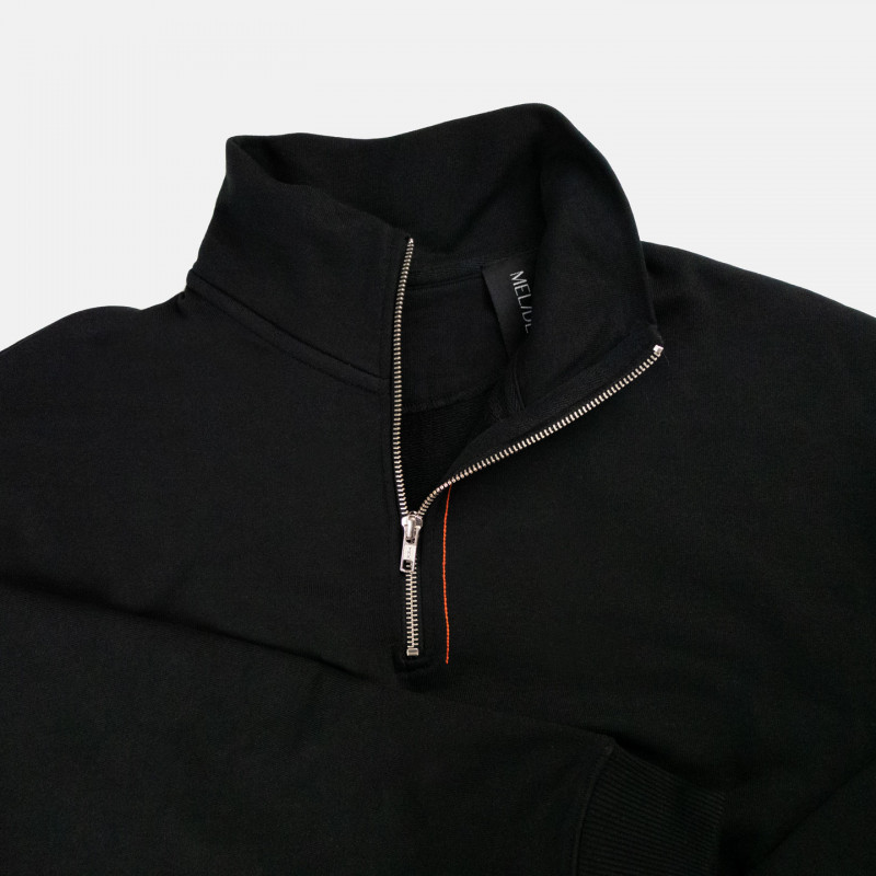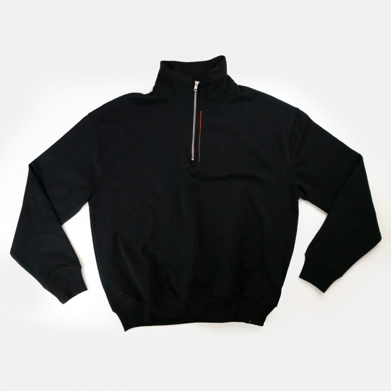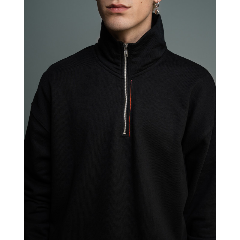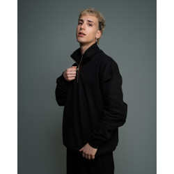 Felpa nera unisex in cotone con collo alto e mezza zip.