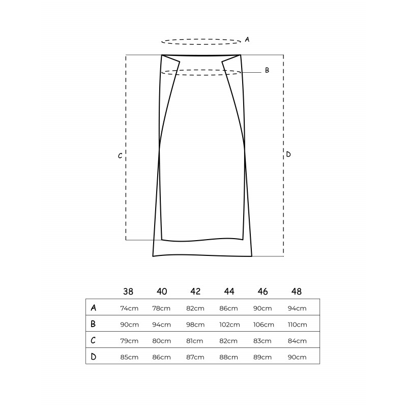 Per questa versione della gonna Gabriella consigliamo di acquistare almeno una taglia in più rispetto a quella indossata di solito.