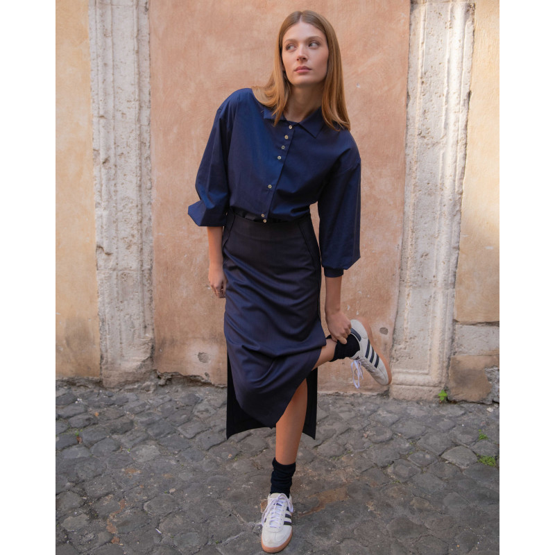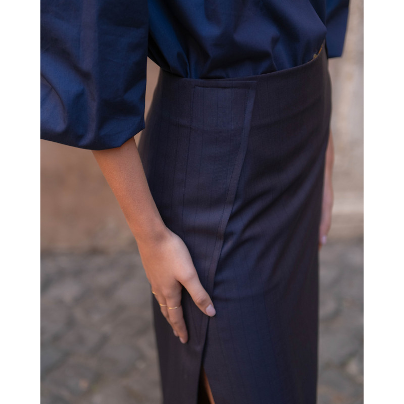 Gonna midi a due pannelli in tessuto deadstock.