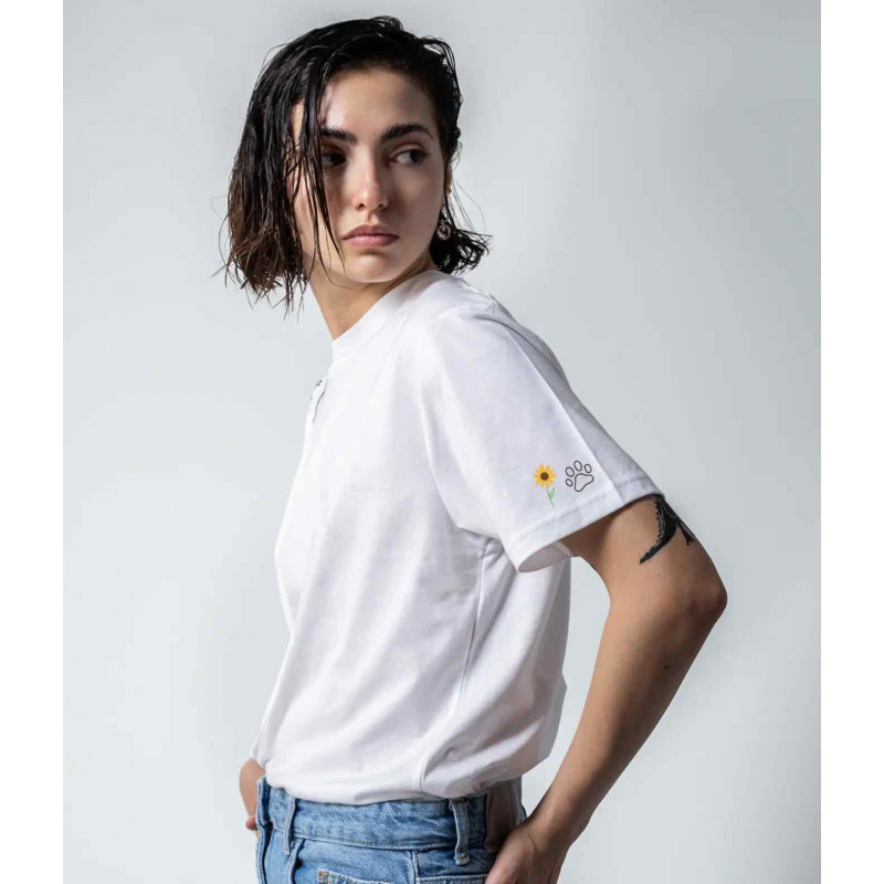 T-shirt ricamata a mano nella factory melidé in cotone GOTS.