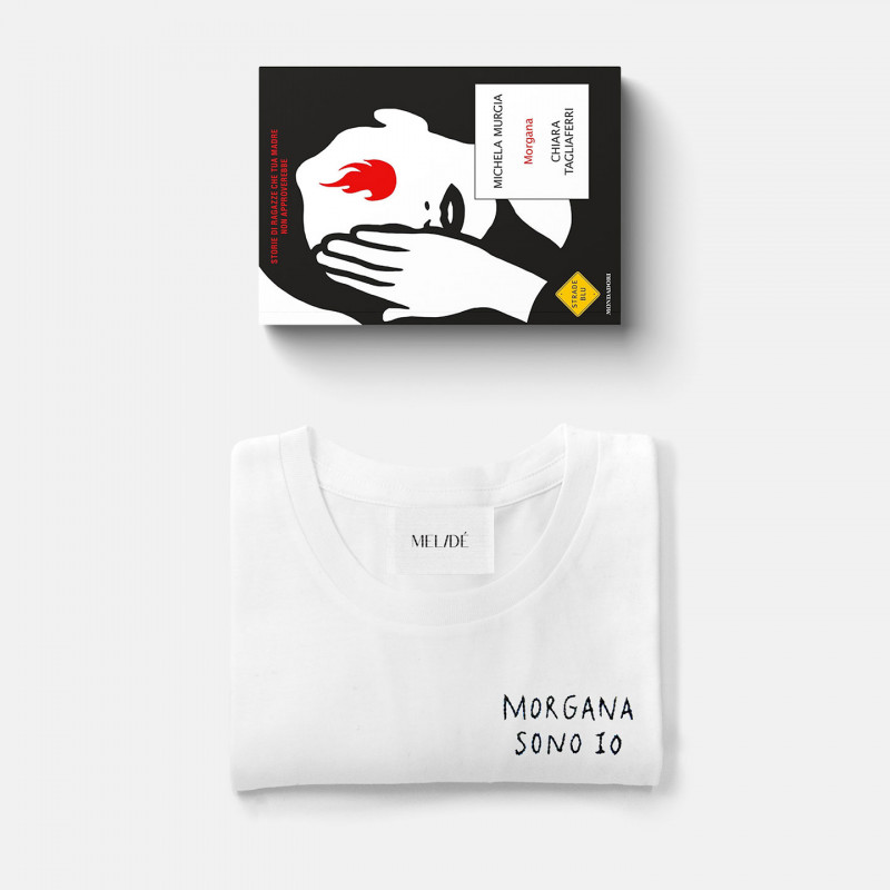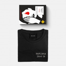 Kit composto da t-shirt ricamata a mano in cotone GOTS disponibile in diversi modelli + Libro "Morgana sono io", Mondadori.