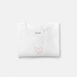 T-shirt ricamata a mano nella factory melidé in cotone GOTS.