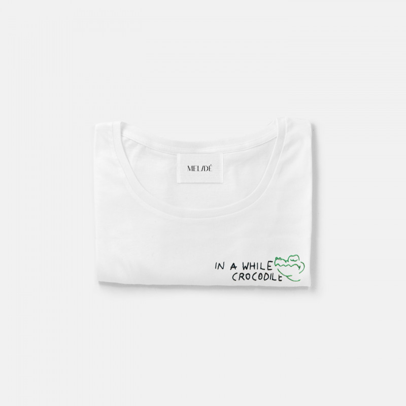 T-shirt in cotone GOTS ricamata a mano su design originale di Giulia Valentina X melidé.