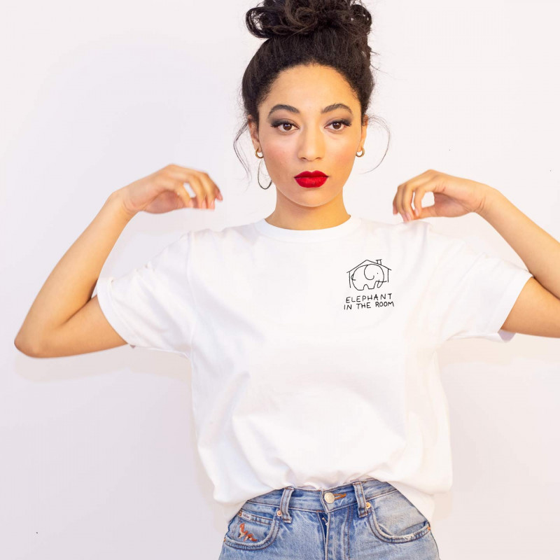 T-shirt in cotone GOTS ricamata a mano su design originale di Giulia Valentina X melidé.