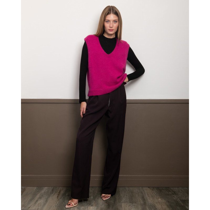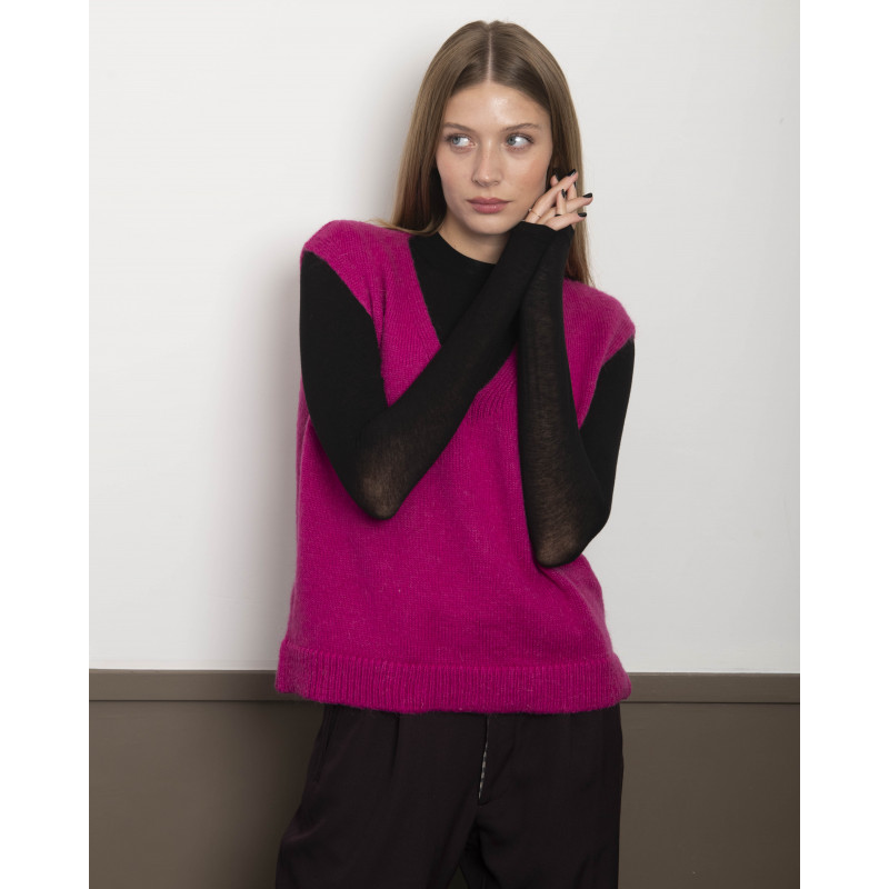 Gilet, top smanicato in misto lana con profondo scollo a V e spacchetti laterali.
