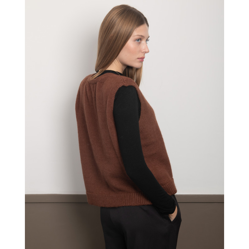 Gilet, top smanicato in misto lana con profondo scollo a V e spacchetti laterali.