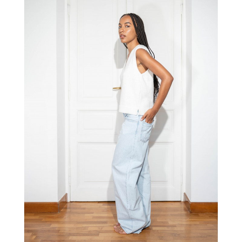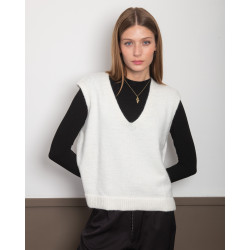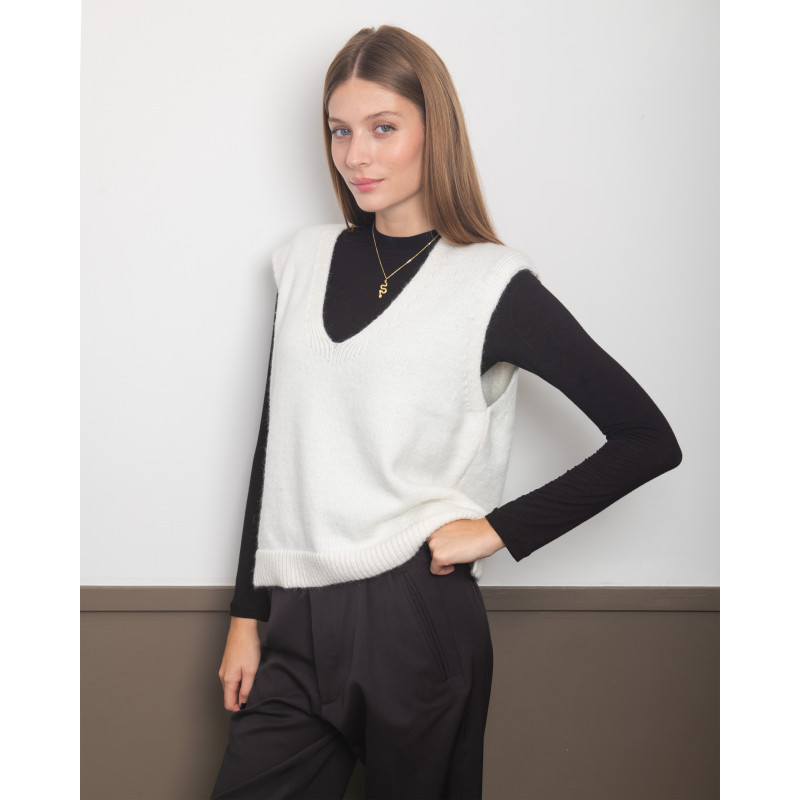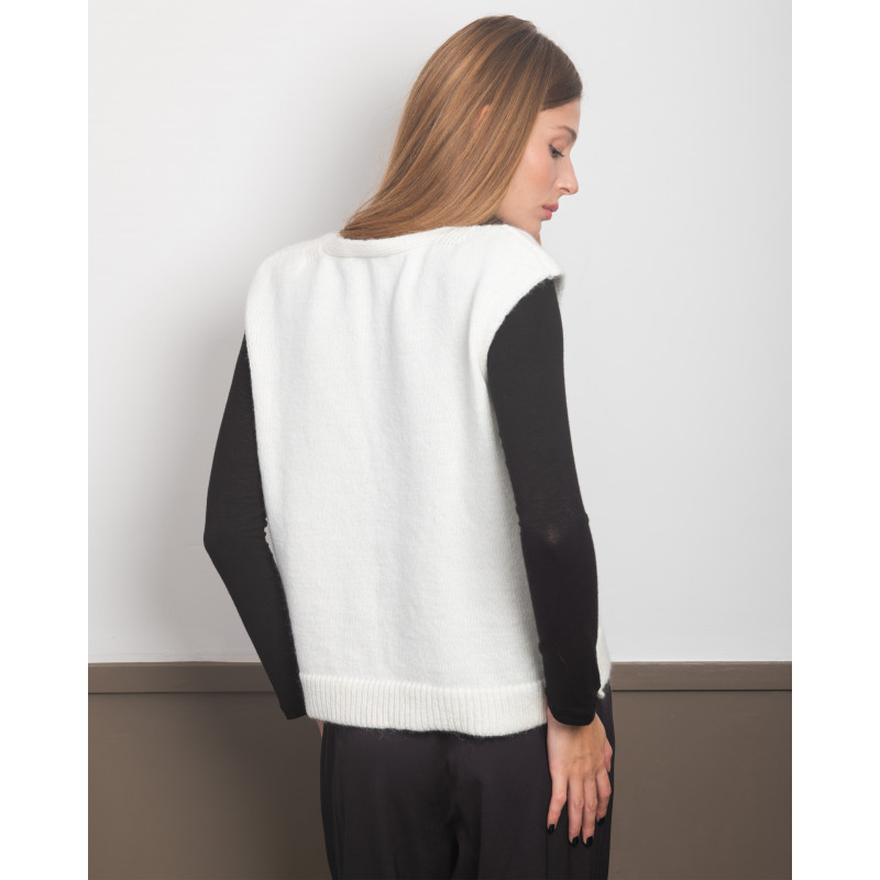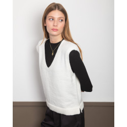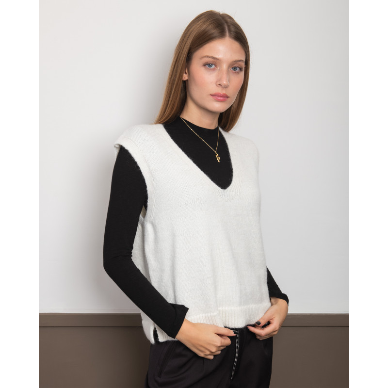 Gilet, top smanicato in misto lana con profondo scollo a V e spacchetti laterali.