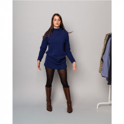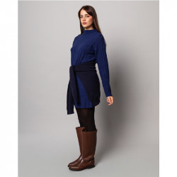 Vestito blu in maglia realizzato con filati deadstock in viscosa, lana e cachemire.