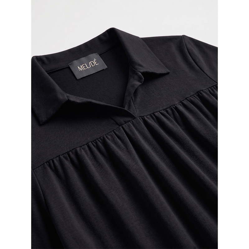 Polo in jersey di cotone a bassa grammatura. Il colletto semiaperto, privo di bottoni, è rifinito con una bordura piatta. Le maniche corte hanno una costruzione morbida e classica.