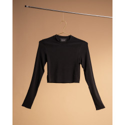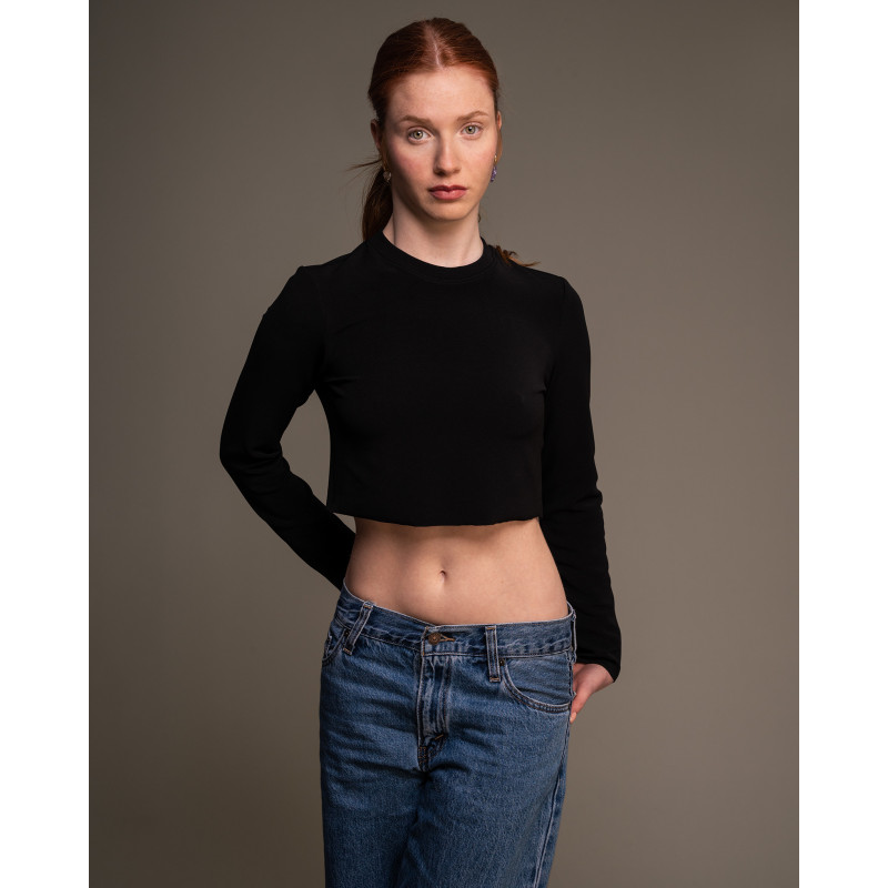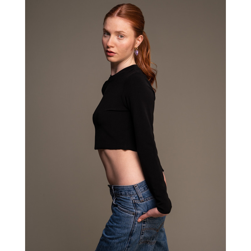 Top cropped in morbido poliestere riciclato nero.