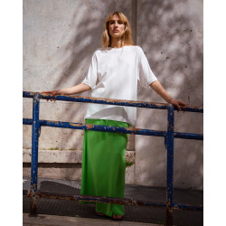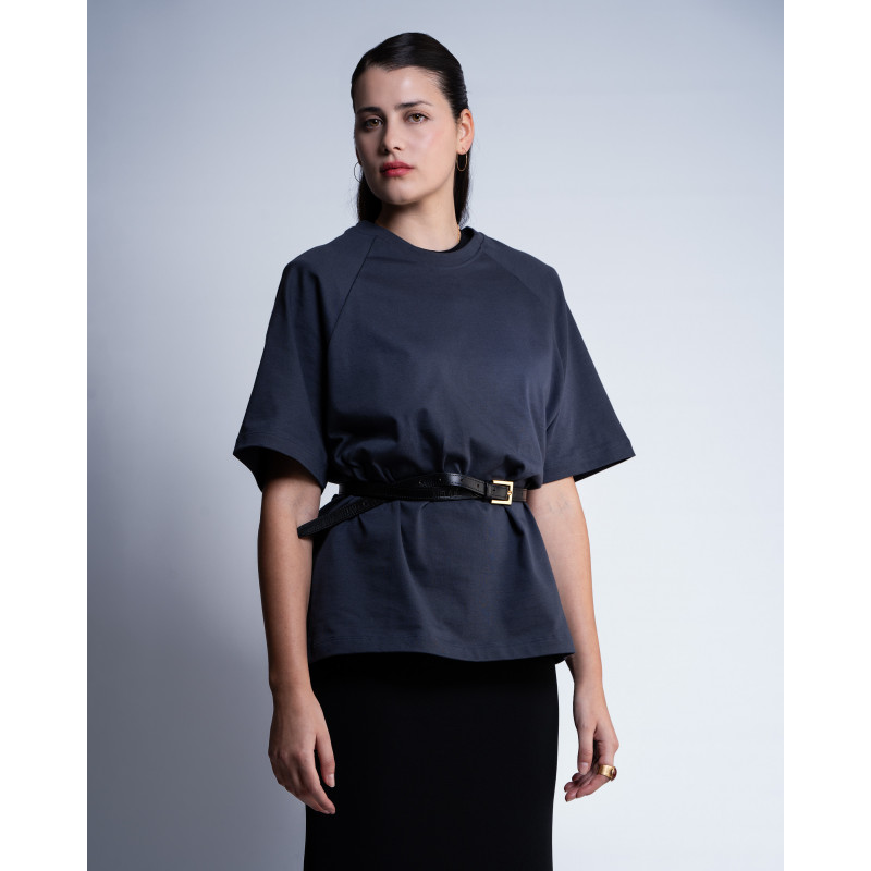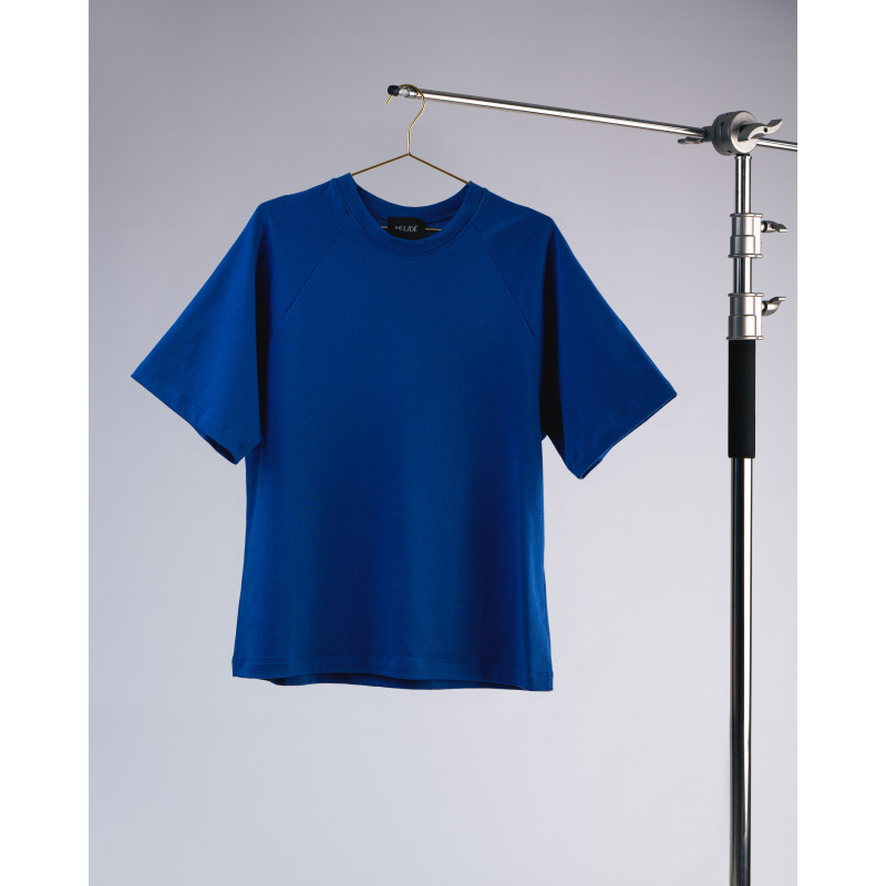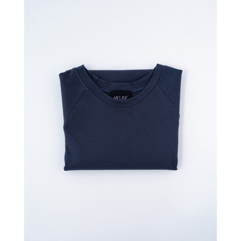T-shirt sartoriale ideata dal team melidé con maniche raglan, realizzata in cotone proveniente da economia circolare.