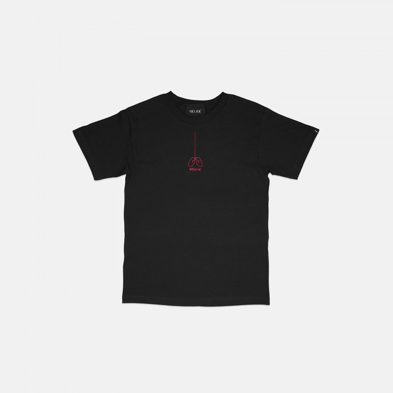 Breathe è uno dei ricami più iconoci e fa parte della storia di melidé. È la t-shirt perfetta da indossare tutti i giorni, per non dimenticare mai di fermarsi e respirare.