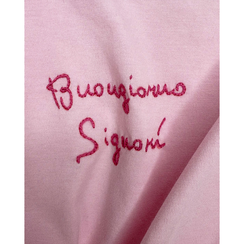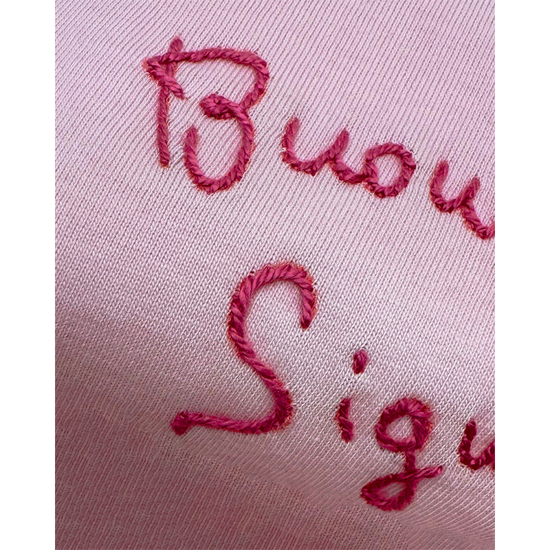 Il ricamo è realizzato a mano nella nostra factory Melidé, da una delle nostre ricamatrici: ogni t-shirt è accompagnata da un cartellino firmato da chi l’ha ricamata.