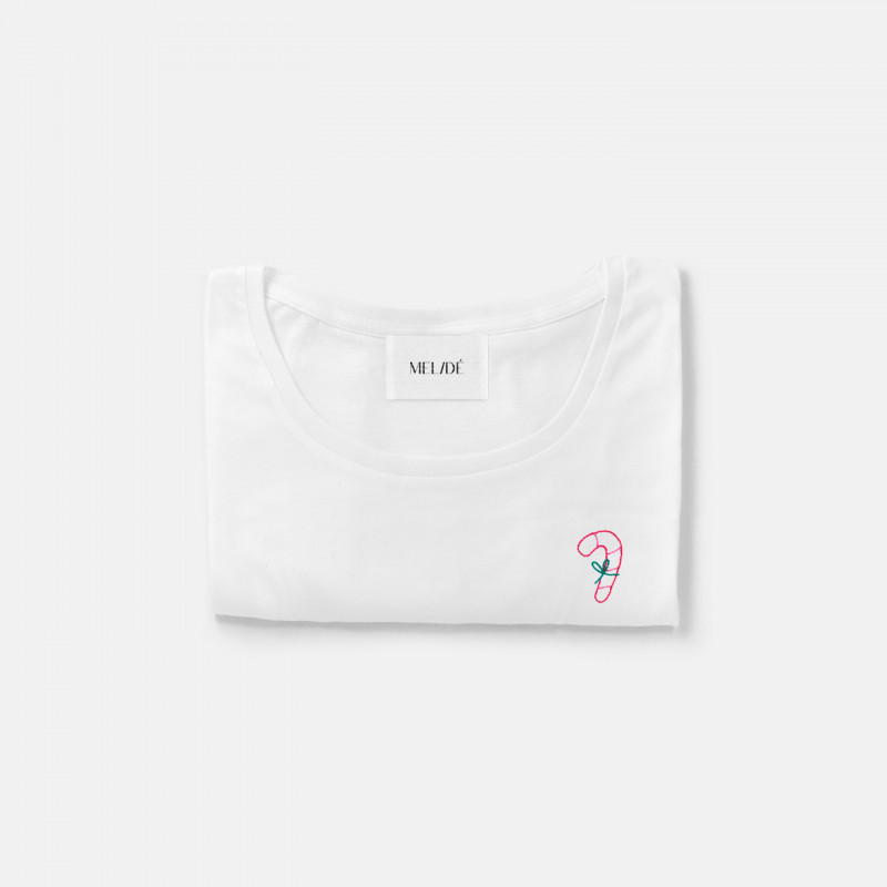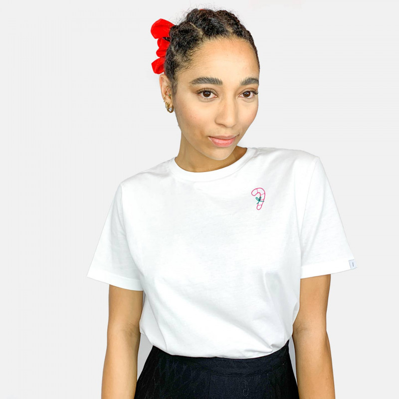 T-shirt ricamata a mano 100% cotone biologico ecosotenibile.