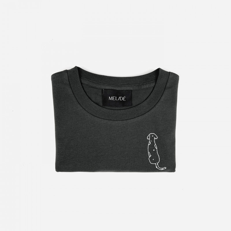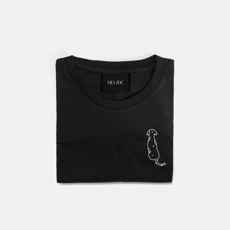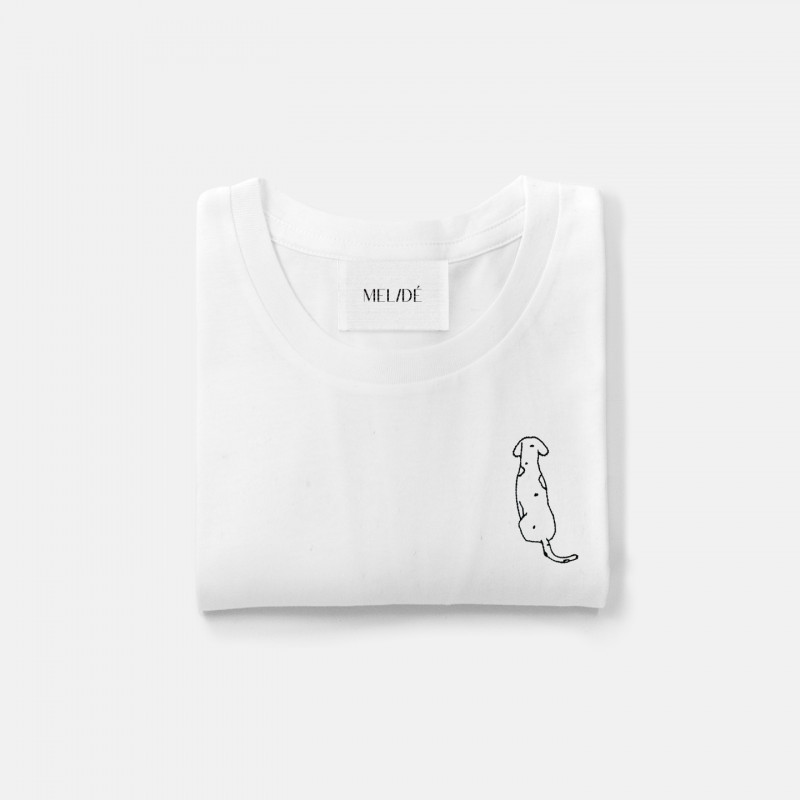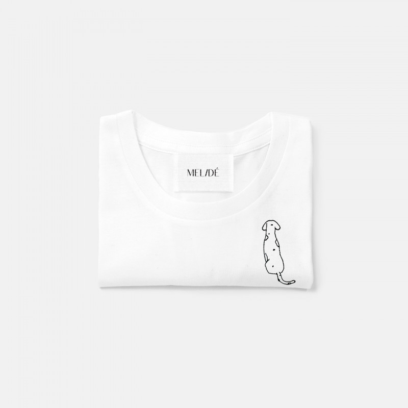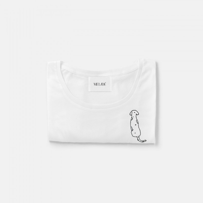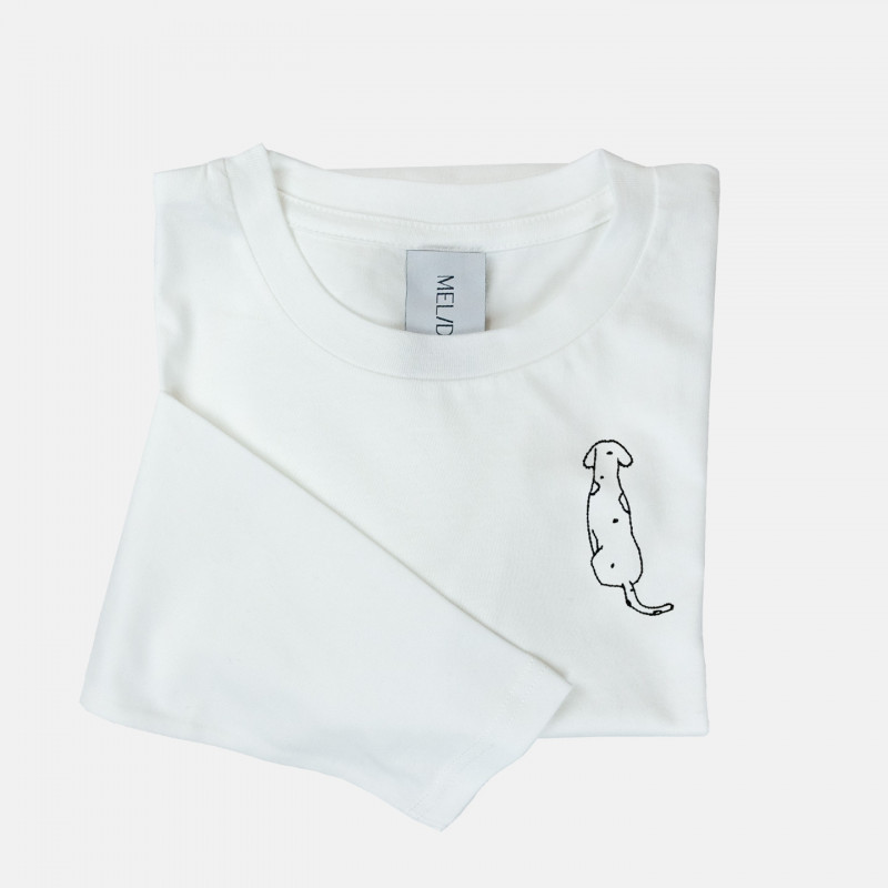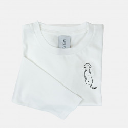 T-shirt in cotone biologico certificato modello Carlotta the Dog, ricamata a mano nella nostra factory. Il ricamo, a differenza delle comuni stampe che si trovano sulle t-shirt in commercio, non perde la qualità con il passare del tempo.